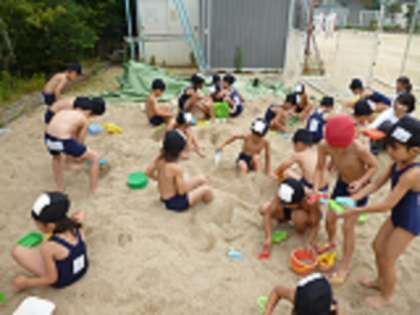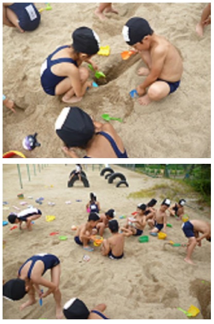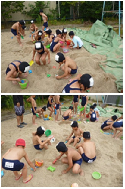 今日は1年1組が、生活科の勉強としてすな遊びをしました!!