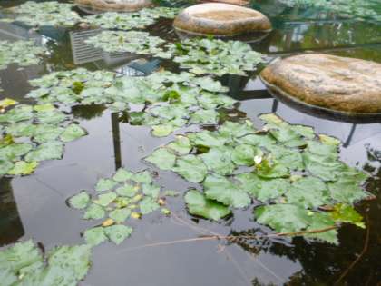 ヒシの葉は、カメやザリガニのエサになるそうです。