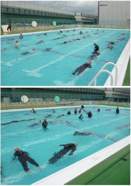 命を守るために、浮く練習もしました。