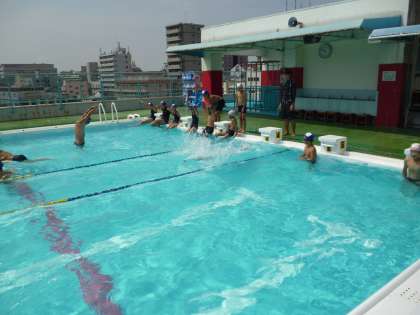 プール開放と水泳特別練習が良い天気の中、行われています。