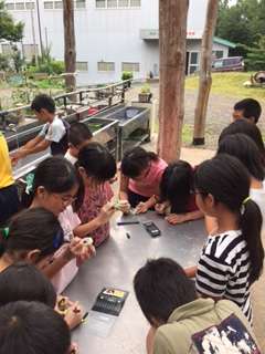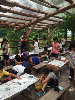 ピカピカツルツルになった勾玉に色をつけて、完成です。いろんな形や色の勾玉ができました。