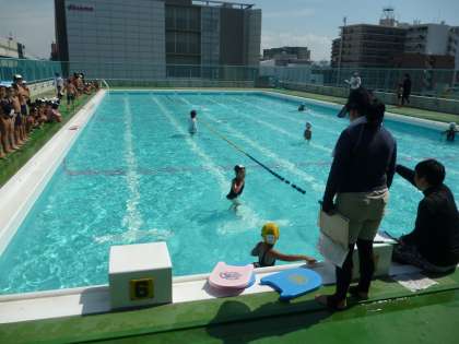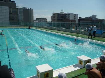 今日の1・2年生のプール学習で、どのくらい泳げるようになったか、自己ベストに挑戦したよ!!