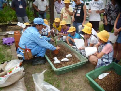 お話をよく聞いて、立派な花菖蒲が育つことを願って、私たち飼育・栽培委員会のメンバーは一生懸命に作業しました!!