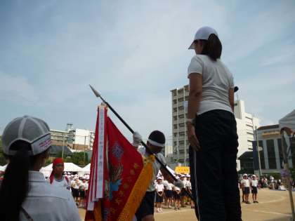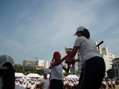 白組応援団長に優勝旗が、赤組の応援団長には準優勝杯が校長先生から手渡されました。