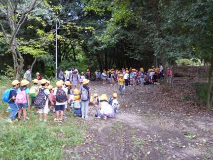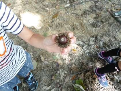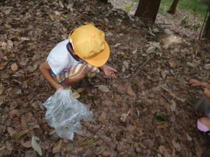 お弁当を食べた後に、みんなでドングリひろいに行きました。