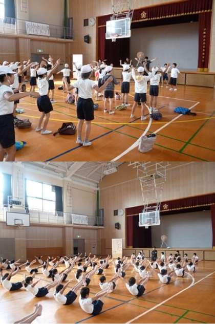はじめに思斉校の5年生が運動会で踊った「くだものカーニバル」を一緒に踊りました。