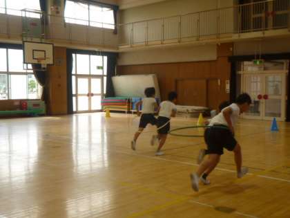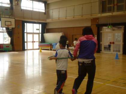 フラフープリレーもしました。