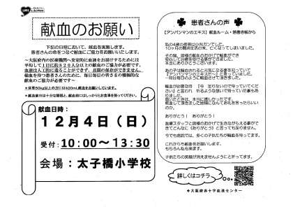 献血のお願い!