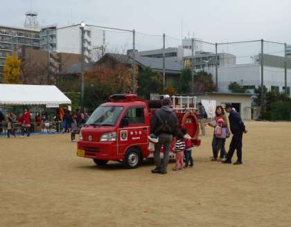 校庭の真ん中には、広報用のミニ消防車『ゆうき』君が来てくれて、展示されていました。