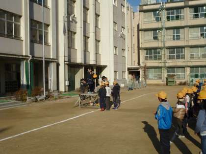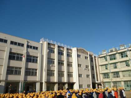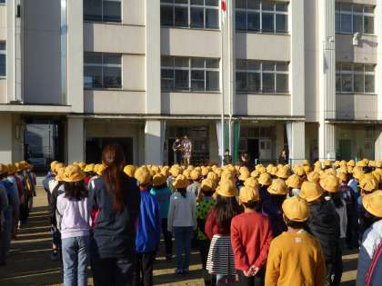 寒さの厳しい朝でしたが、雲一つない冬晴れの澄み切った空気の中、児童朝会が行われました。