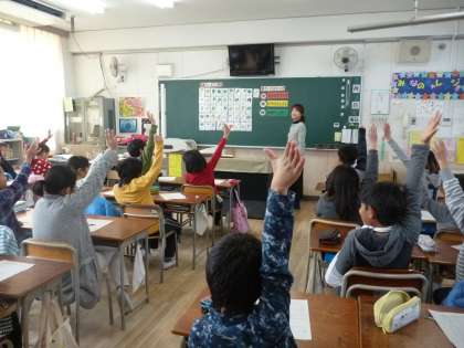 初めに、給食に出てくる野菜を当てるビンゴゲームをして盛り上がりました。