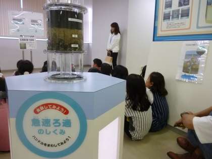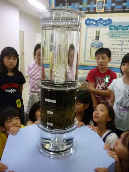 また、『急速ろ過池』で水がきれいになっていく様子も実験で見ることもできました!!