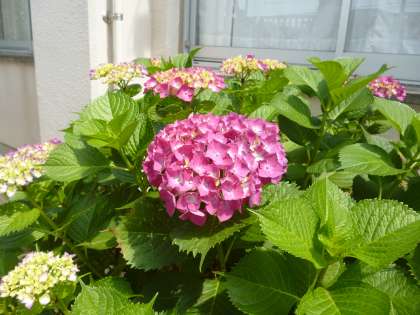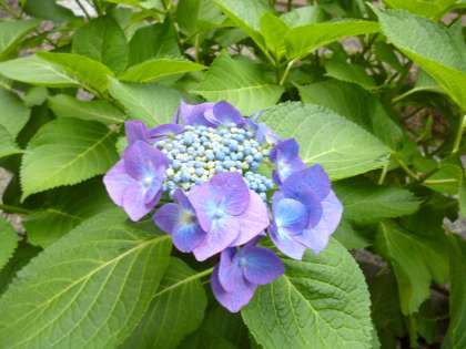 今の季節、校内の中庭やビオトープのアジサイ、花ショウブなどがきれいな花を咲かせています!!