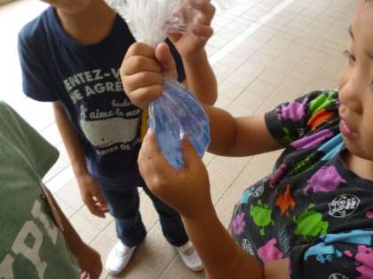 1年生の隣のクラスでは、アサガオを使って勉強をしていました。