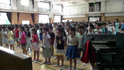 『全校児童による校歌斉唱』(平成29年度 第2学期 始業式)