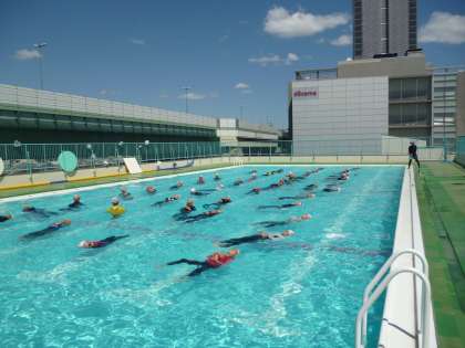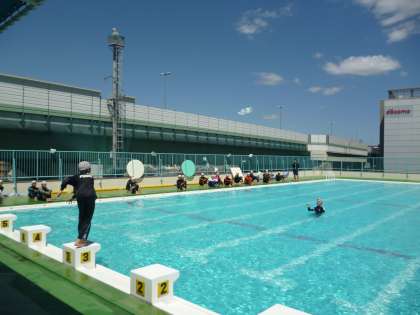 初めに着衣のままで泳ぐことの大変さを体験しました。