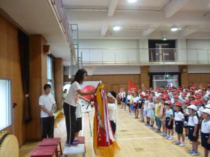 開会式で行われる『優勝旗返還』や『ちかいの言葉』、『運動会の歌』の練習をしました。