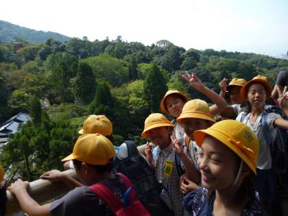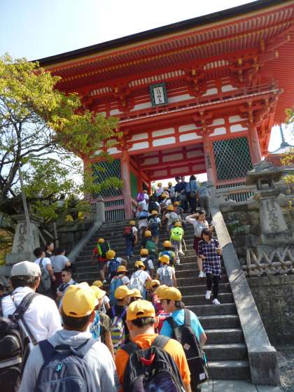 清水寺の大きな門をくぐって清水の舞台までのぼりました。