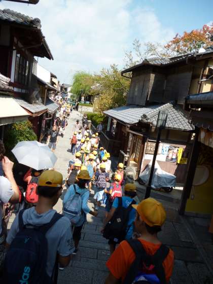 世界遺産の清水寺から八坂神社までは、風情のある古い京都の町並みを通ることができました。