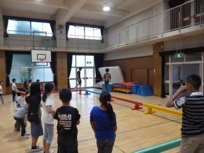 講堂では今までで一番長い一本橋で、ジャンケンゲームをして遊んでいました。