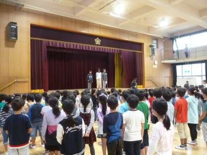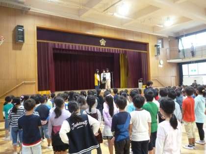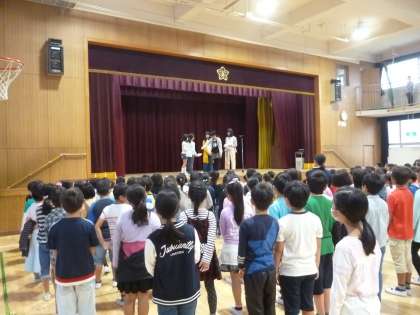 今朝の児童朝会で、児童会からのお知らせがありました。