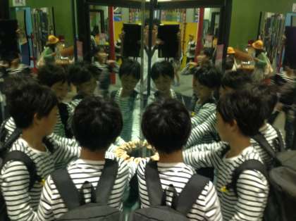 ・『なんにんみえる?』では、鏡の角度によって映る人数が変わってきます。何人に分身しているのか?数えてみよう!! そして、本物はどれなんだろう!?
