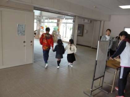 講堂を出発し、優しく手を引いて健康診断のある各教室を回りました。