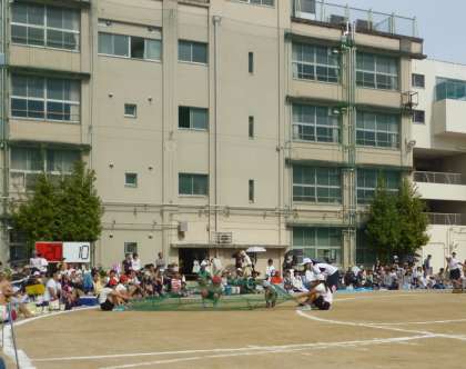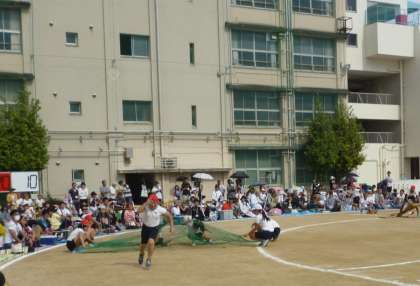 最後にあみの下をくぐりぬけ、『ゴールに向かって全力疾走!!』