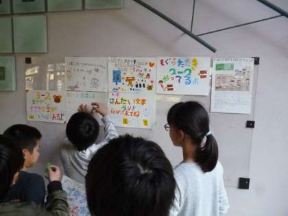 代表委員会の子どもたちは、『お店紹介のポスター』を玄関に掲示したり、運動場では、『はじめの言葉』や『みんなでゲーム』、『司会』などの進行の仕方を繰り返し練習したりしていました。