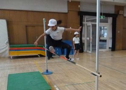 昨日、講堂で3年生の『高跳び』の授業がありました。