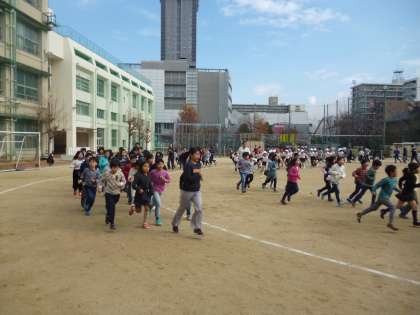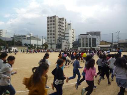 子どもたちは、校庭に飛び出し元気よく走っていました。