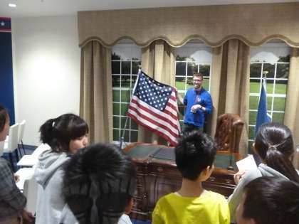 ホワイトハウスの執務室で選挙に関する表現を学ぶことや、化石の発掘を疑似体験することもできました。