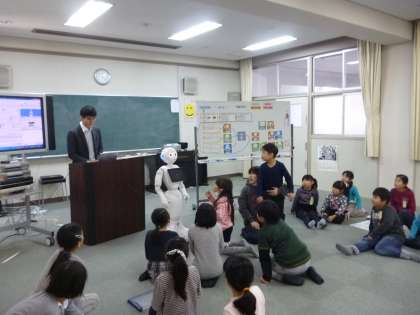 3年生が多目的室でペッパーくんと一緒にプログラミングの学習をしました。