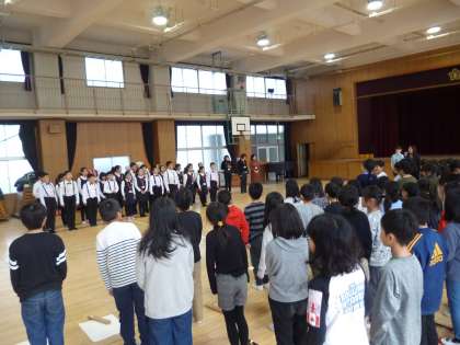 初めにそれぞれの小学校の校長先生があいさつを交わしました。