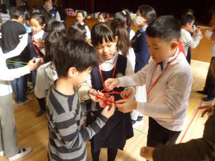 最後に中国と日本の友だちが一緒になってグループをつくり、長縄の回数を競い合いました。