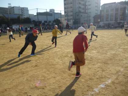 今年は、1年生から順に6年生と鬼ごっこで対決していきました。