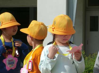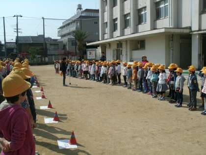 1年生は緊張した面持ちで、全校児童の前に並びました。