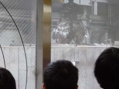 大きなクレーンがごみを持ち上げるところを見ることができました。