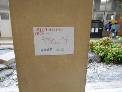 朝、児童会のメンバーが玄関で『友だちを傷つけるような言葉づかいはやめよう!』と登校するみんなに呼びかけていました!!