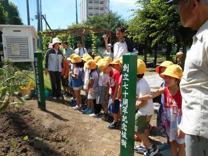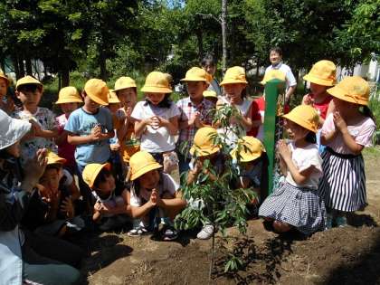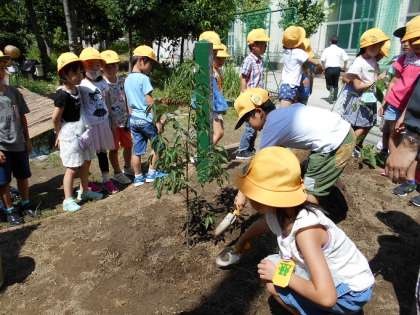 PTAと友の会からご寄附をいただいた3本の木の苗は