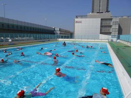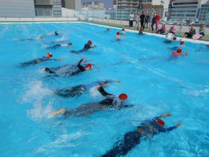 着衣のまま泳いでみたり、長い時間浮いたりする体験をしました。