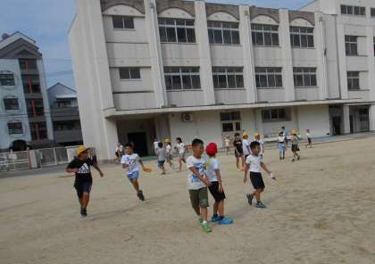 高学年が中心になって、“鬼ごっこ”や“ドッジボール”などみんなが楽しく活動していました!!