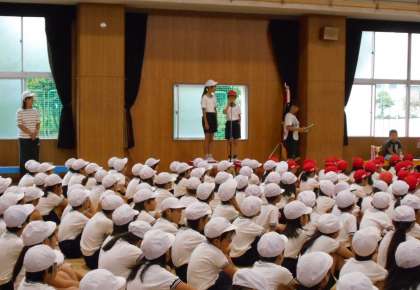 『優勝旗の返還』『児童ちかいの言葉』、閉会式の『成績発表』などの練習ができました。