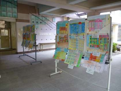 記念行事のためにつくられた子どもたちの作品が、ピロティーや講堂にきれいに並べられ、飾られていました‼
