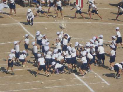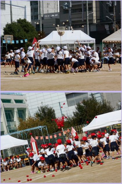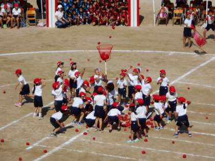 1年生にとってはとても高いところにあるカゴの中へ、一生懸命に入れようとしている姿がかわいいですね!