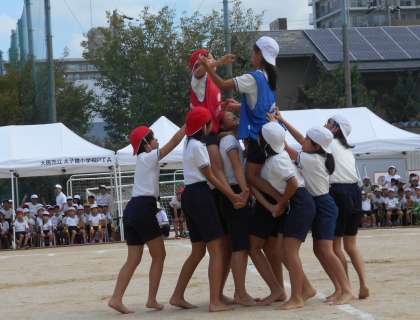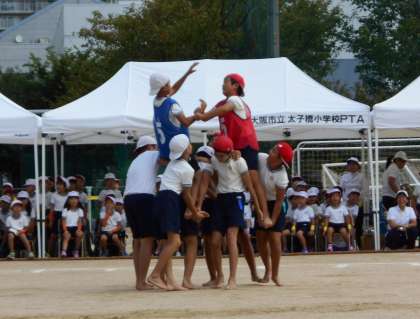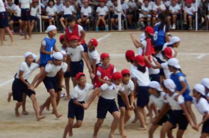 6年生の団体競技『騎馬戦』は、赤組と白組との天下分け目の戦いです。