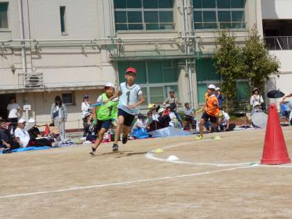 勝敗を決めるバトンパスをスムーズにきめて、力強く走り切りました‼