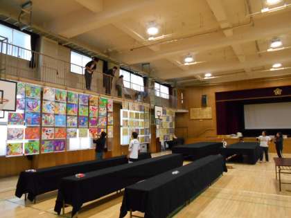 放課後、子どもたちの作品を順次講堂に展示していくなど、準備は着々と進んでいます。