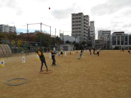 低学年から高学年までが仲良く楽しく、次の人へボールをつないでいくことができました。