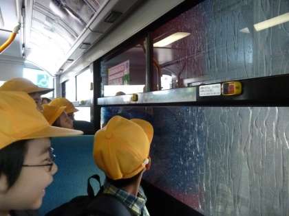 洗車機を通っているところは、バスの中から見学させてもらいました。